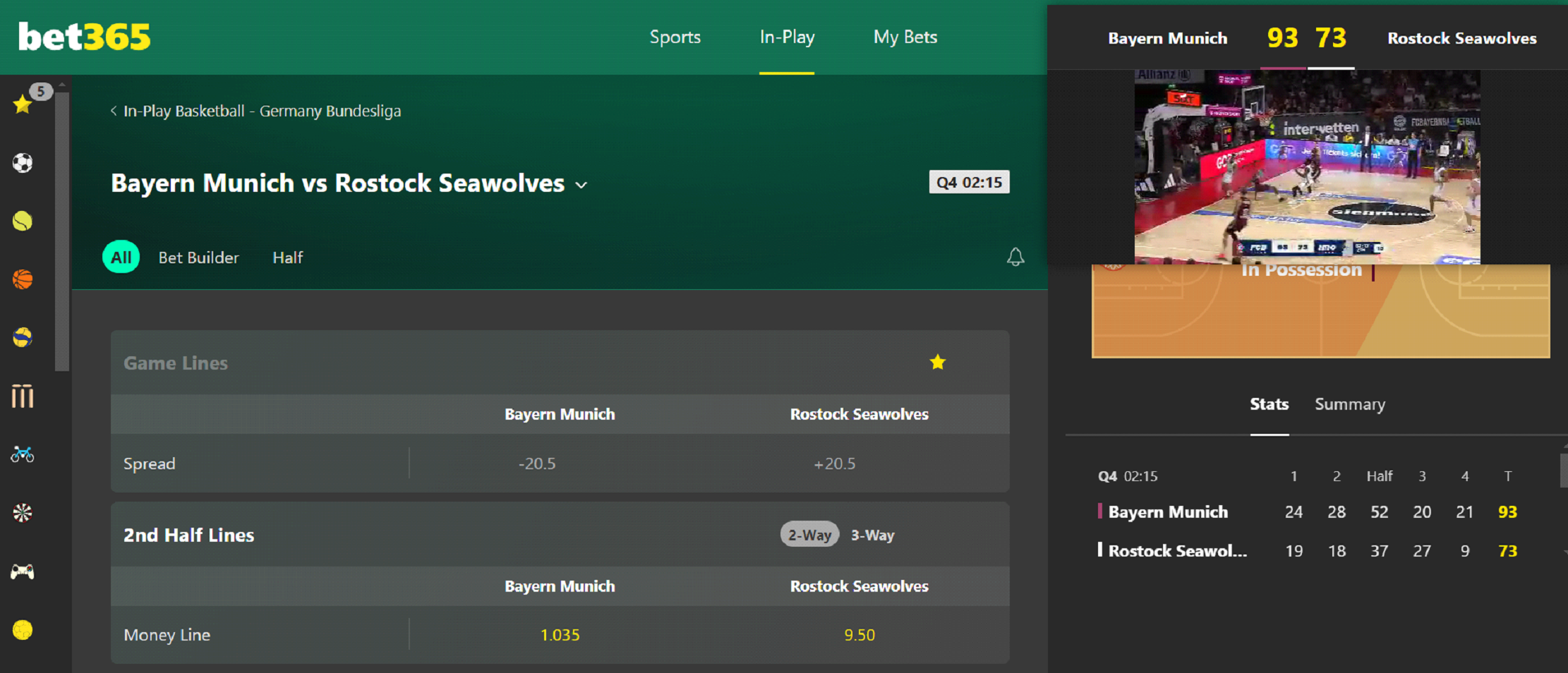 Dans un autre exemple, le Bayern Munich s’est imposé 93-73 contre Rostock en BBL. Bien que Rostock ne soit pas dépourvu de talents offensifs, le manque d’équilibre, de continuité et les lacunes défensives n’incitaient guère à la confiance et ces problèmes récurrents ont eu raison de ses ambitions. À l’inverse, le Bayern, malgré l’enchaînement des matchs, avait retrouvé ses repères et son efficacité. Avec à une maîtrise collective supérieure, une intensité défensive et une meilleure gestion des temps faibles, on pouvait s’attendre à voir l’écart se stabiliser au moins autour de +12/+15 de manière rationnelle, un H- ajusté en faveur du Bayern malgré le calendrier représentait une bonne confiance.
